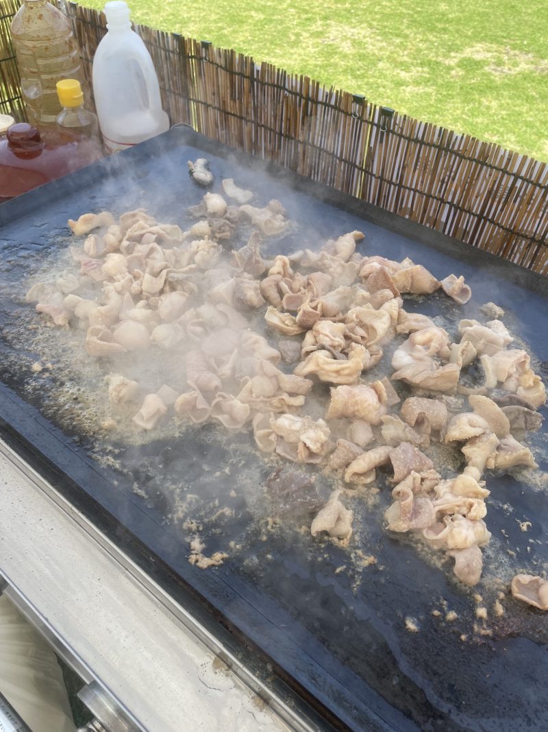 「無人販売所」ではパック詰めされた商品を提供していますが、今回はその場で調理。ジュワーッという音と香りに誘われて、多くの方に足を運んでいただきました。「ここのホルモン、美味しいんだよね!」と声をかけてくださる方もいて、脱サラしてこの道を選んで本当に良かったと、胸が熱くなる瞬間でした。