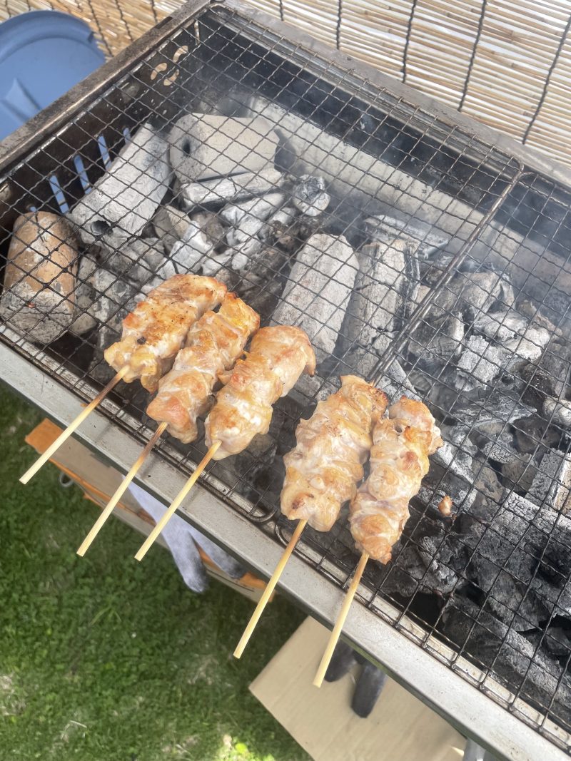 • 業務用BBQコンロ(商品リンク) 炭火の火力が安定しやすく、地鶏の炭火焼には欠かせない一台。設営のしやすさも抜群でした。