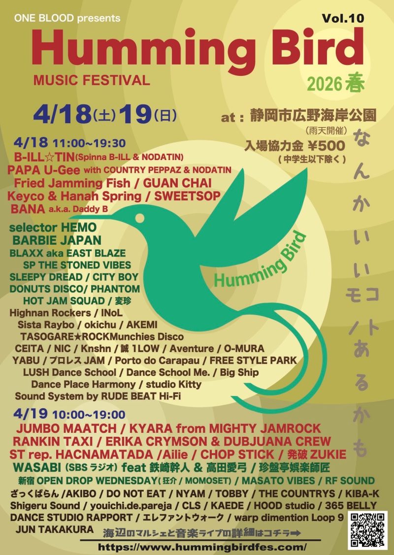 4月18日、19日の2日間、静岡市駿河区の用宗で開催された野外音楽イベント「ハミングバード」に出店してきました!